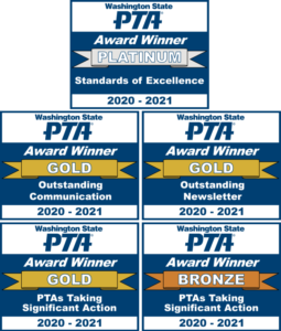 Washington State PTA announced Awards of Excellence at the 2021 WSPTA Convention. The purpose of Washington State PTA’s Awards of Excellence program is to celebrate the work local PTAs and councils do to make a difference for their communities.