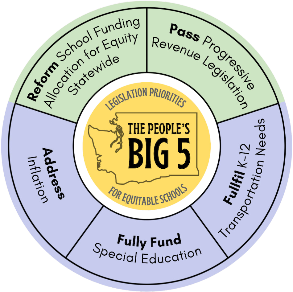 Rather than accepting chronic shortfalls as inevitable, the Big 5 demands that Washington “fix our broken funding formulas and inequitable tax system” and ensure that school funding reflects the real costs of educating every child.