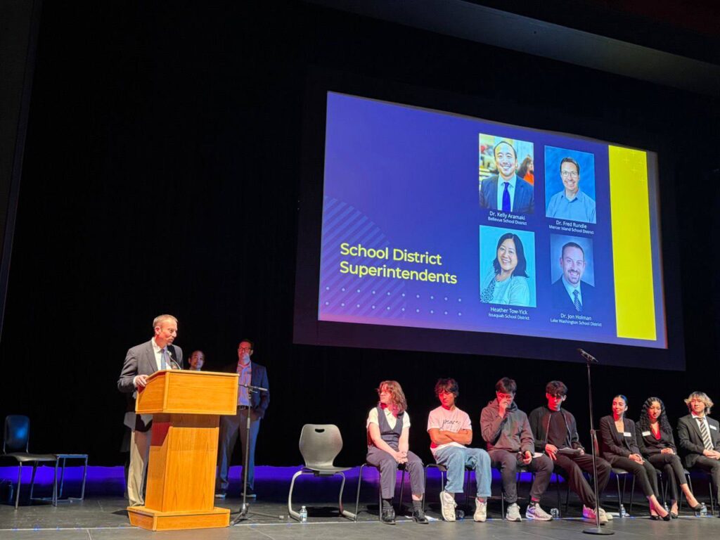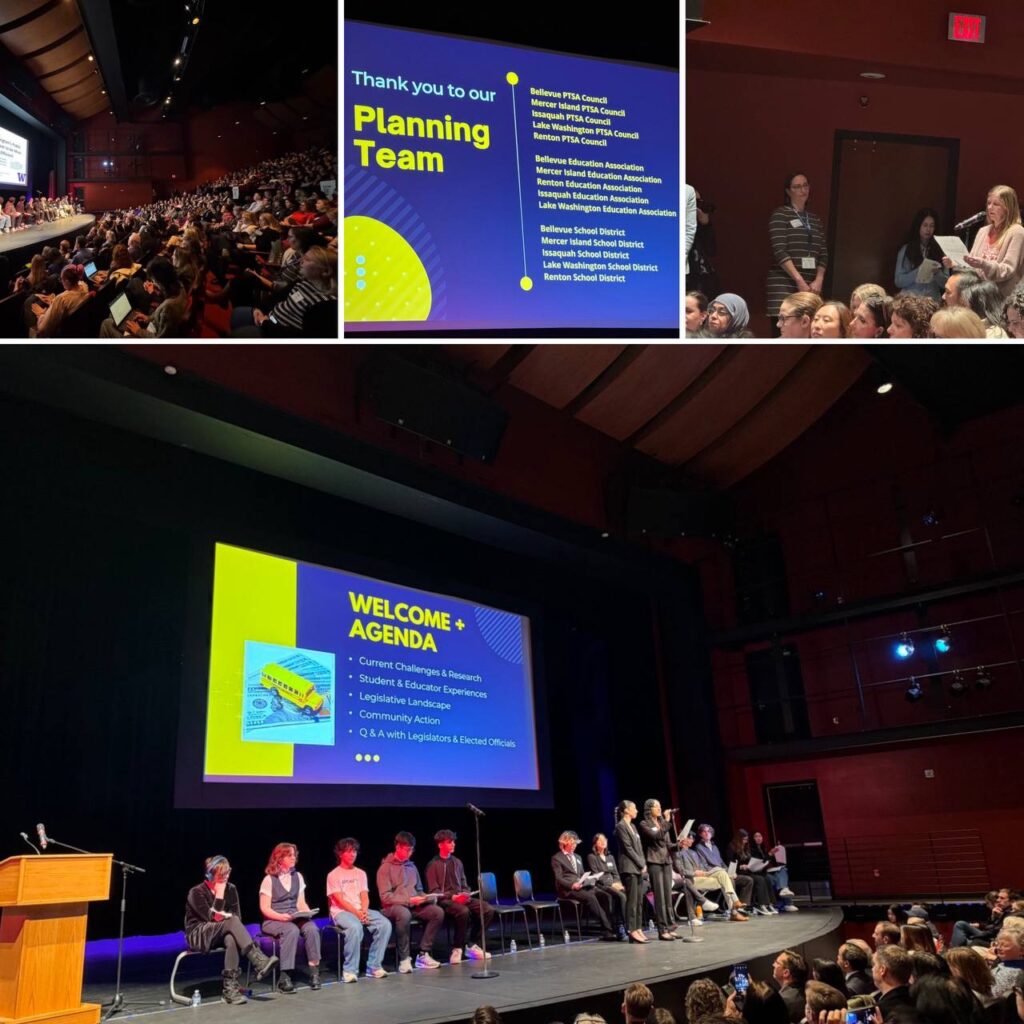 Approximately 1,000 PTA members, students, parents, educators and leaders from school districts across the Seattle Eastside—including Lake Washington, Bellevue, Mercer Island, Issaquah and others—came together in a strong showing at a town hall on Wednesday, Jan. 8, at Sammamish High School, to seek answers and demand solutions to the severe shortfall in the state’s education funding. State legislators from area legislative districts were joined by Washington State Superintendent of Public Instruction Chris Reykdal to discuss funding concerns hear directly from the attendees. [Watch reports on King5 News and​​ KOMO News.]
