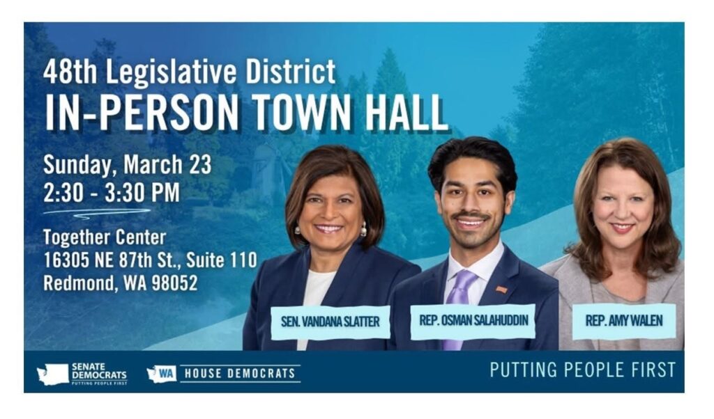 📍 District 48March 23, 2:30–3:30 pm | Together Center, Redmond