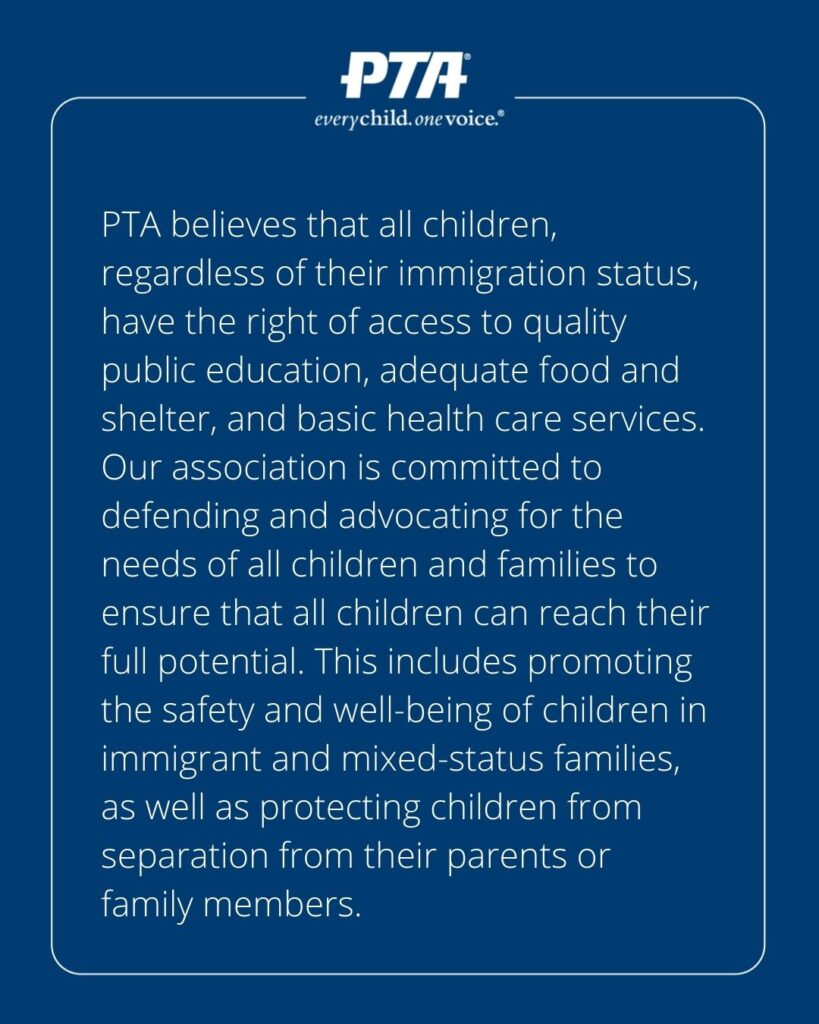 Rights and Services for Children in Immigrant & Mixed-Status Families: https://www.pta.org/home/advocacy/ptas-positions/Individual-Position-Statements/Rights-and-Services-for-Children-in-Immigrant-and-Mixed-Status-Families